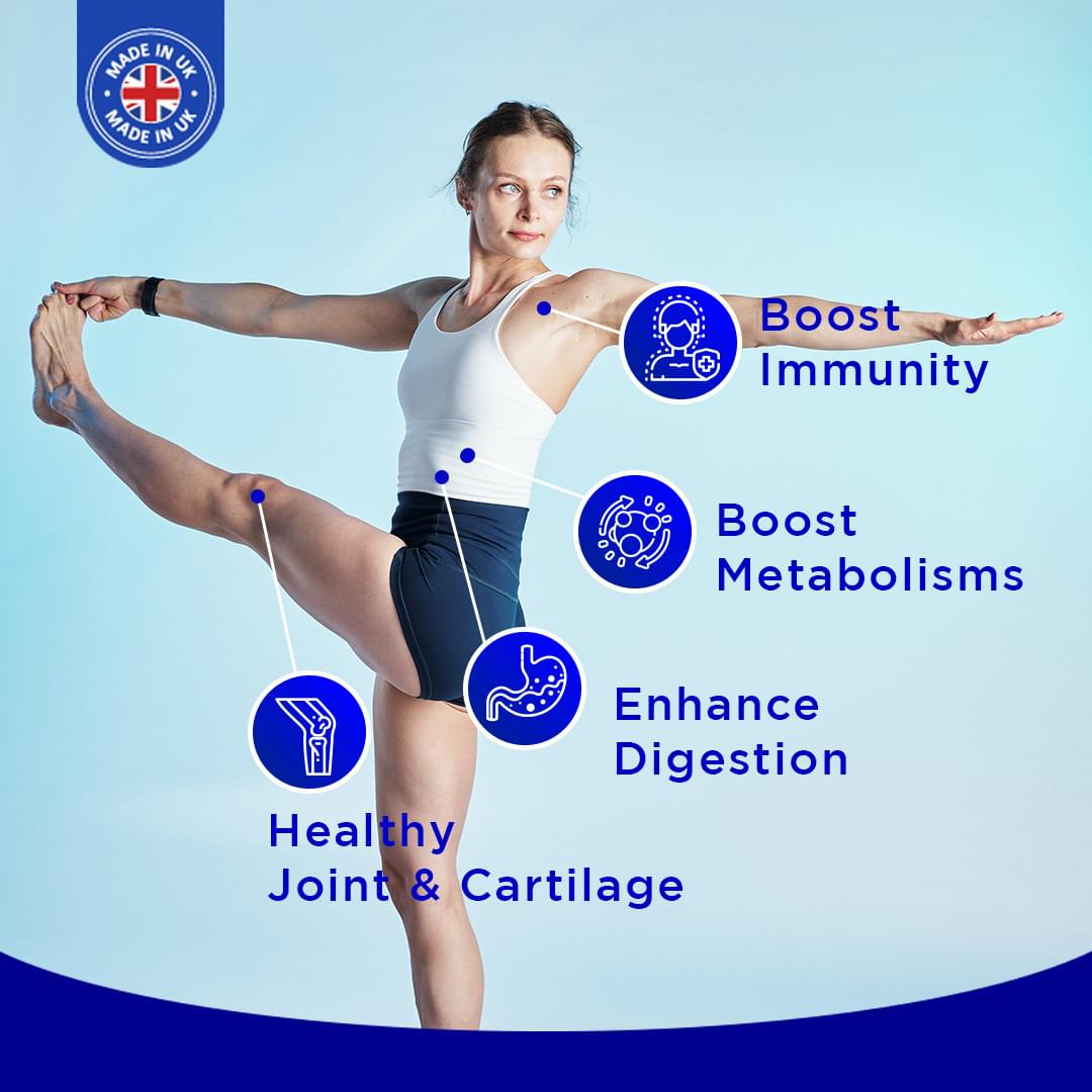Collagen is also the scaffolding upon which bones and cartilage are built, allowing for smooth mobility in joints.